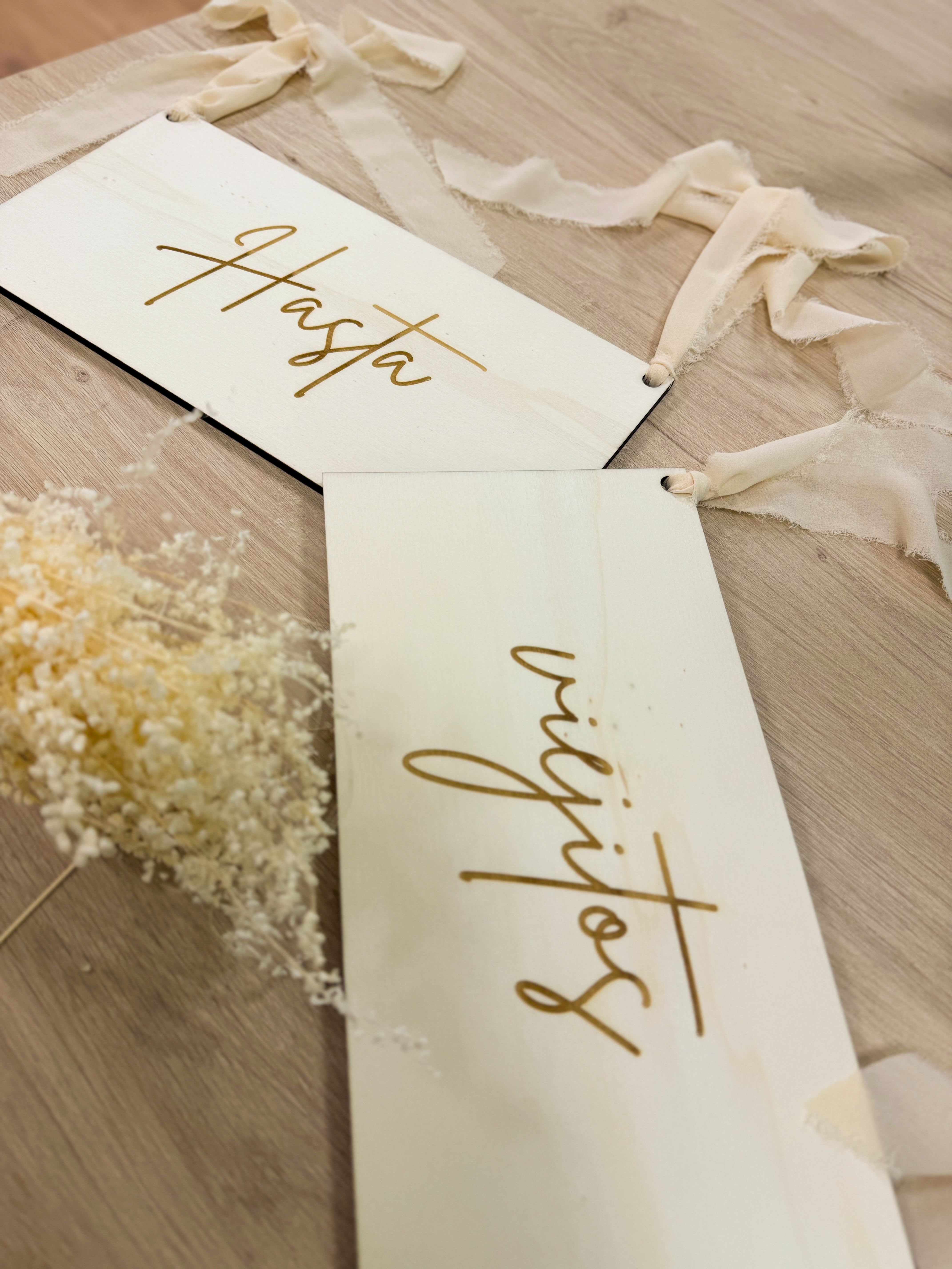 Decora las sillas de tu día especial, con estos carteles de madera personalizados, que además podrás aprovecharlos como recuerdo y elemento decorativo.